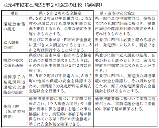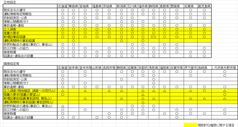2014年5月21日、福井地裁樋口英明裁判長が大飯原発3、4号機運転差し止めを認めた判決の一節です。福島原発事故は、原発が憲法13条(個人の尊重)や憲法25条(国民の生存権)に基づく人格権を侵害することを明確にしました。衆参両院で改憲派が発議に必要な3分の2を超えたとされる中、暮らしの中での憲法の意味や原発との関連を考えてみるのも意義があるでしょう。 判決文の中では「(原発は)その存在自体が憲法上容認できないというのが極論にすぎるとしても」とされていますが、原発違憲論を主張する澤野義一大阪経済法科大学教授は、さらに進んで、原発事故では、居住・移動の権利(憲法22条)、財産権(憲法29条)、働く権利(憲法27条)、学習権(憲法26条)や平等原則(憲法14条)などが侵害されると解説しています。そして、本稿のテーマである地方自治に関しても「福島のような原発事故が起きると、地方自治体が根本的に破壊され、存続できなくなることもある。それは、住民自治と団体自治の理念を含む住民主権ないし地域民主主義の侵害を意味する。」として地方自治を定めた憲法92条侵害の違憲性を指摘しています。注1) 憲法92条には「地方公共団体の組織及び運営に関する事項は、地方自治の本旨に基いて、法律でこれを定める。」と書かれていて、この「地方自治の本旨」とは住民自治と団体自治の二つの要素からなり、住民自治とは、地方自治が住民の意思に基づいて行われるという民主主義的要素であり、団体自治とは、地方自治が国から独立した団体にゆだねられ、団体自らの意思と責任の下でなされるという自由主義的・地方分権的要素であると言われています。つまり、地方自治体は、住民の意思に基づいて自らの意思と責任の下で運営されるもので、国の下部機関では決してないということです。 原発事故時だけではなく、国策として進められてきた原発は、立地の段階から地域住民の意思を踏みにじり、補助金、交付金による縛りなどあらゆる方法で自治体を国に従わせる形で推進されてきました。しかし一方で、多くの地域が原発や原子力関連施設の立地を拒否しており、時には、その闘いは自治体ぐるみで行われてきました。地方自治法では、「地方公共団体は、住民の福祉の増進を図ることを基本として、地域における行政を自主的かつ総合的に実施する役割を広く担うものとする。」とされており、地域住民の人格権等を守り、住民の福祉の増進を図るのは地方自治体本来の責務であるはずです。 脱原発の未来を切り拓くのは地域の力であると信じ、各地の先進例などの報告とともに地方自治のあり方を考えてみたいと思います。 注1)澤野義一「脱原発と平和の憲法理論」法律文化社 安全規制への自治体の関与1 安全協定とは既存の原発等に関しては、まず安全規制を徹底して、基準を満たせないものは廃止させ、事故を2度と起こさせないようにしなければなりません。福島原発事故後に策定された新規制基準を満たしたとされる原発から再稼働が図られていますが、新規制基準で新たに求められている主な設備は、フィルターベントとか第二制御室とかで、福島のようなシビアクシデントを未然防止するための設備を追加したのではなく、シビアクシデントが起こった時に影響を緩和するものに過ぎません。2014年4月に策定されたエネルギー基本計画でも「万が一事故が起きた場合、国は関係法令に基づき責任を持って対処する」と書かれていて、万が一とはいいながら事故が再発することを否定できないのです。そもそも、新規制基準といっても、津波襲来以前に地震の揺れで機器や配管にどの程度損傷が及んだのかなど福島事故の原因究明も十分ではないなかでは、おのずと限界があるはずです。 また、新規制基準の審査の中で強化されたはずの耐震審査で、基準地震動算定に入倉式を使う電力会社のやり方は過小評価だと前規制委員長代理の島崎邦彦氏が批判を行い、規制委員会の審査自体が信頼性を失うという異常な事態となっています。 このような状況では、安全規制を国任せにせず、自治体は最寄りの原発の安全性を自らも点検すべきです。ところが、ここには法的権限という壁が存在します。原子炉等規制法など原子力関連法規では安全規制の権限は国に一元化されていて、自治体に法的権限はありません。行政の効率化のため二重行政は排さなければならず、どこかで線引きして国か自治体かどちらが担当するのか決めるのは当然ですが、大気汚染防止法などの環境法令の規制権限が都道府県や市町村に与えられているのと比べると対照的です。原子力は国策として進めてきたことや、高度に専門的なので国に一元化されてきたのでしょう。 そこで活用されることになったのが「原子力安全協定」です。 「原子力安全協定」は、住民の安全確保や周辺環境の保全を目的として、自治体が原子力事業者と結ぶものです。安全協定については、地方自治法14 条2項に「普通地方公共団体は、