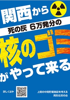 関西から死の灰6万発分の核のゴミがやってくる今、山口県内で右のようなポスターが貼られています。